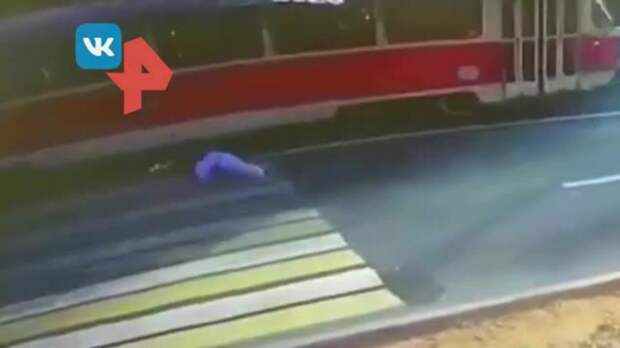 В Волгограде молодой человек, переходя проезжую часть по пешеходному переходу, судя по всему, забыл о правилах поведения на дороге и не заметил проезжавшего мимо него трамвая.