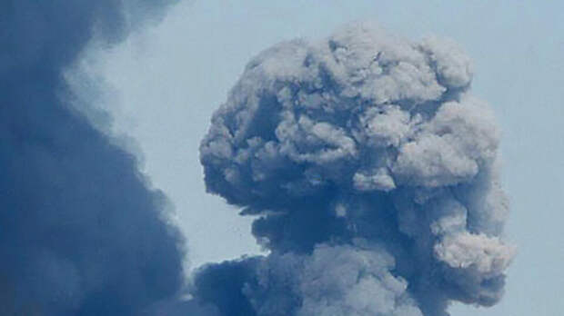 На видео падающая ракета оставляет за собой инверсионный след, после чего в небе над нефтеперерабатывающим заводом появляется огромное облако из огня и дыма.