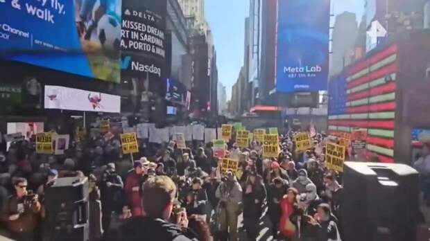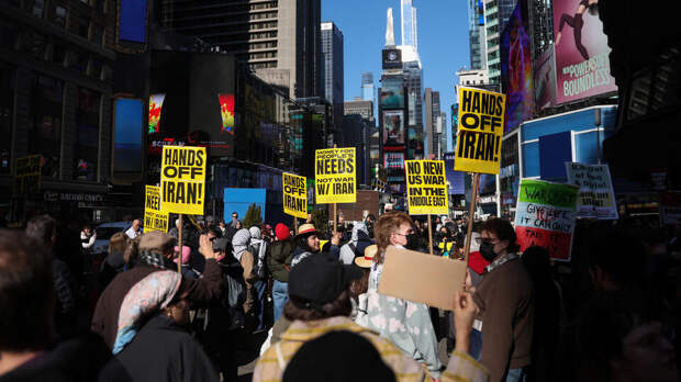 В Нью-Йорке 28 февраля сотни человек вышли на митинг, протестуя против атак США на Иран.