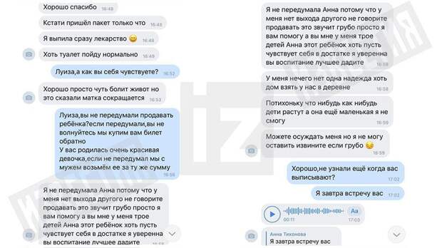Луиза родила здоровую девочку. В переписке она выразила надежду, что ребенок будет счастлив в новой семье. Многодетную мать спросили еще раз, не передумала ли она продавать девочку.