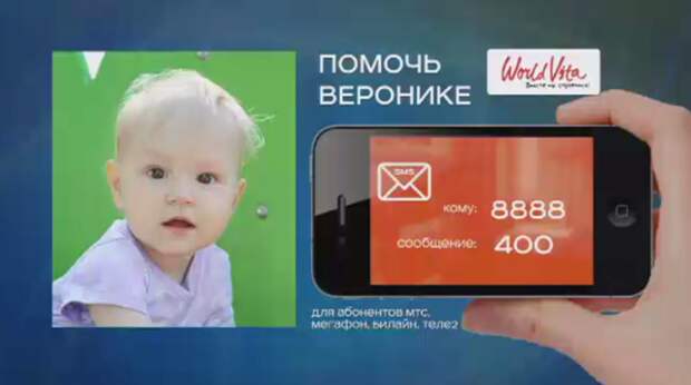 И сделать это очень просто — достаточно отправить СМС на короткий номер 8888, в тексте указать любую сумму. Можно также воспользоваться кредитной картой, электронным кошельком или сделать банковский перевод. Инструкции и реквизиты есть на нашем сайте worldvita.ren.tv. Еще раз — огромное Вам спасибо!