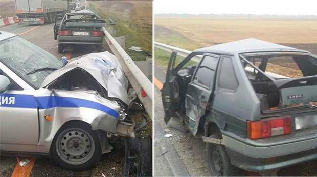 После столкновения последний по инерции столкнулся с патрульным автомобилем ВАЗ-217050.