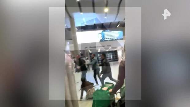 На кадрах видно, как между мужчинами в зале прилета завязалась драка. Несколько человек окружили Александра.