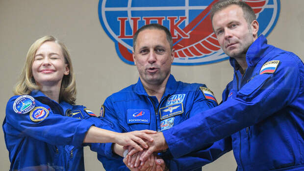 Актриса Юлия Пересильд, космонавт Антон Шкаплеров и режиссер Клим Шипенко. РИА Новости/Рамиль Ситдиков Фильм «Вызов» должен стать частью большого научно-просветительского проекта «Роскосмоса» и призван показать, что космические полеты становятся доступными обычным людям. По планам съемки фильма пройдут прямо на борту Международной космической станции. В готовом фильме отснятый в космосе материал должен занять около 35 минут хронометража.