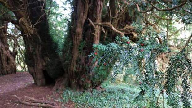 Как сообщают местные СМИ, на ветках тиса, которому около трех тысяч лет, внезапно появились ягоды. У деревьев мужского пола этого сорта на ветках вырастают небольшие шишки, а у "женских" деревьев появляются ярко-красные ягоды.