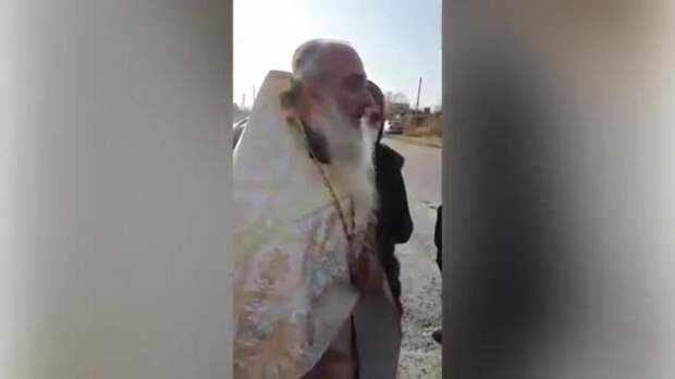На видео видно, как священник уходит от толпы верующих, после чего ввязывается с ними в перепалку и драку, выкрикивая нецензурные слова.