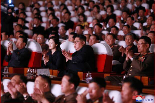 Руководитель КНДР со свитой посетил концерт кружков художественной самодеятельности жен офицеров Корейской народной армии (КНА). На мероприятии также присутствовала супруга лидера Ли Соль Чжу.