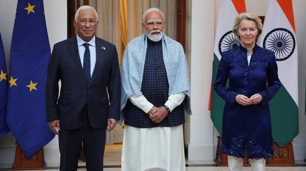 Евросоюз сегодня устроил политическое шоу специально для американцев. Глава Еврокомиссии Урсула фон дер Ляйен даже предстала в особенном костюме – длинный синий пиджак в индийском стиле, светлые брюки. Так она явилась на встречу с премьер-министром Индии Нарендрой Моди.