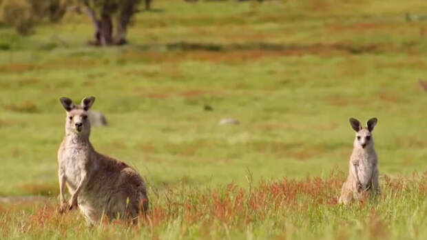 Это кадры тестов. Кенгуру резко останавливаются перед машиной с устройством. Прибор работает на опережение. Он сканирует местность за километр и включает звук, когда датчики улавливают движение.
