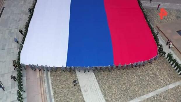 Огромный триколор развернули у стен Музея Победы в День Государственного флага в субботу, 22 августа. В патриотической акции участвовали представители Росгвардии, юнармейцы, студенты и волонтеры.