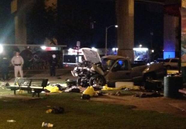 В результате инцидента погибли четыре человека, еще минимум девять, в том числе водитель пикапа, получили различные травмы.