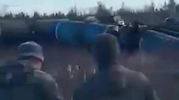 Очевидцы, проезжавшие мимо места происшествия, сняли последствия схода цистерн.