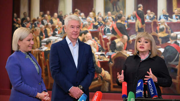 Мэр Москвы Сергей Собянин и министр культуры России Ольга Любимова открыли на ВДНХ выставку "Образ Москвы в русском искусстве из коллекции Государственного Русского музея".