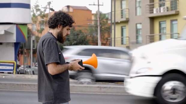"Вместо объектива у камеры – рупор. Сначала он отправляет во внешний мир звук определенной частоты, а затем улавливает отраженную разными предметами акустическую волну. После этого данные об эхе анализирует нейросеть, которую я обучал с помощью видеороликов. Она генерирует художественные изображения с учетом геолокации объекта и погоды", – объяснил создатель акустической фотокамеры.