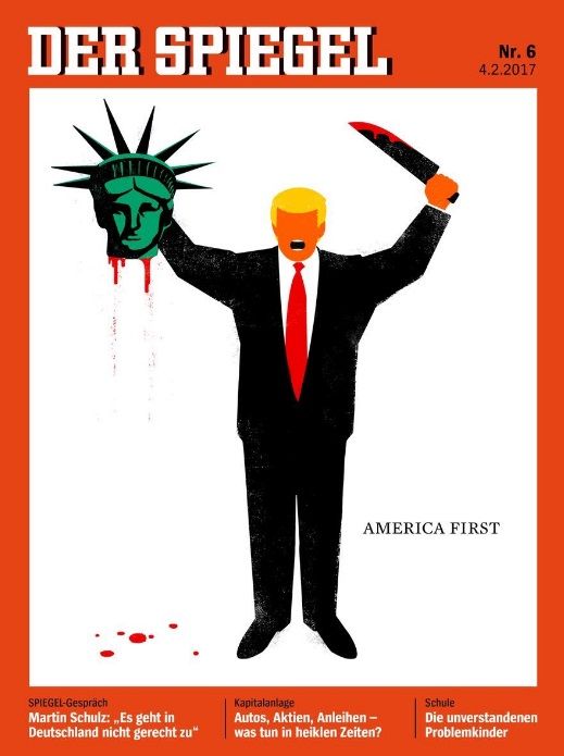 Немецкий журнал Der Spiegel поместил на обложку нового номера изображение президента США Дональда Трампа, держащего в руке голову статуи Свободы.