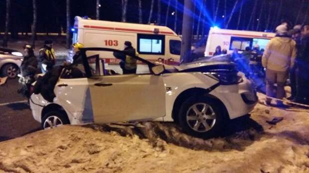 Молодого человека зажало в машине после того, как его автомобиль врезался в фонарный столб на западе столицы.