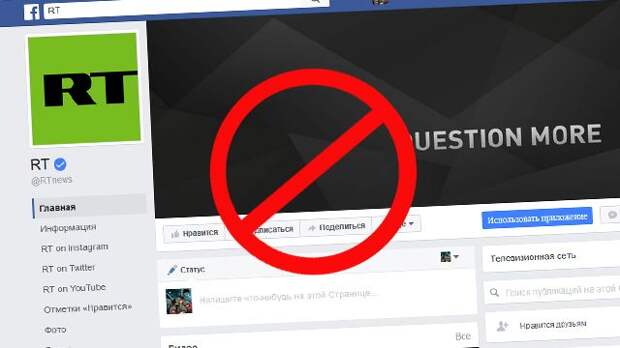 Представители Facebook наложили ряд ограничений на аккаунт издания RT. Телеканал не сможет размещать на своей англоязычной странице посты со ссылками на материалы, изображения или видеоконтент.