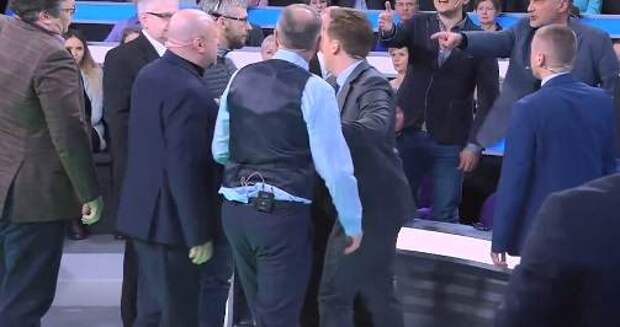 Телеведущим пришлось разнимать дерущихся гостей программы.
