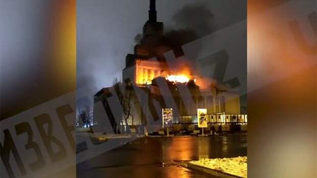 Стали ясны последствия возгорания после потушенного пожара на строительных лесах главного павильона ВДНХ "Дружба народов". Пострадал фасад здания.