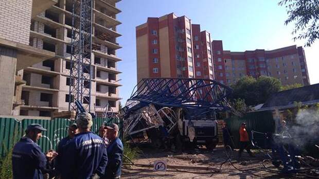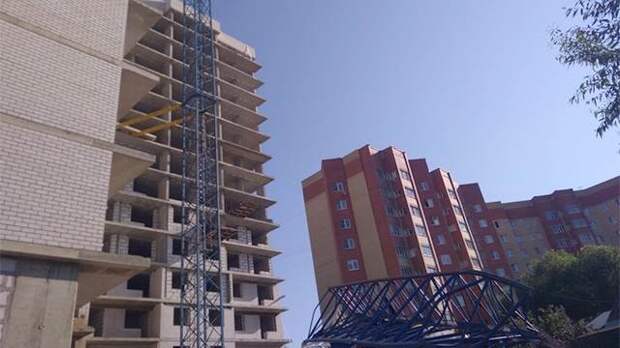 Отмечается, что при падении пострадали 2 человека, строящийся дом кран не повредил.