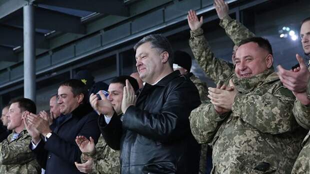 Видеозапись произошедшего появилась в социальной сети "ВКонтакте".Сам Петр Порошенко написал на своей странице в Twitter, что присутствовал на этом матче в присутствии бойцов АТО.