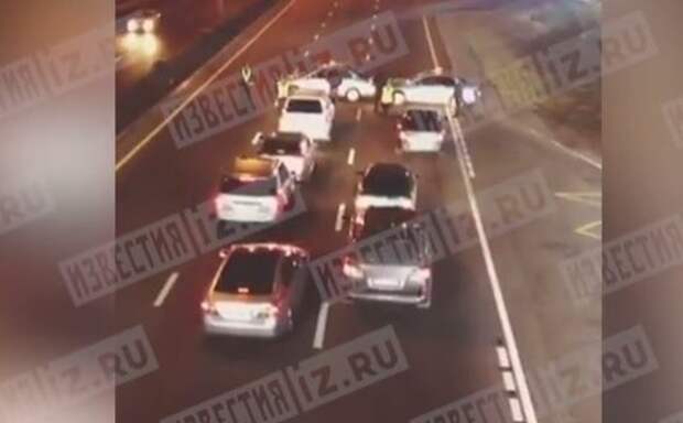 На кадрах видно, как полицейские перекрыли дорогу и остановили несколько машин, чтобы проверить водителей и пассажиров. Один из автомобилей объезжает кордон, сбивает сотрудника МВД, а затем из салона раздается стрельба.