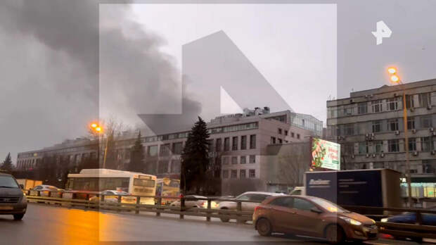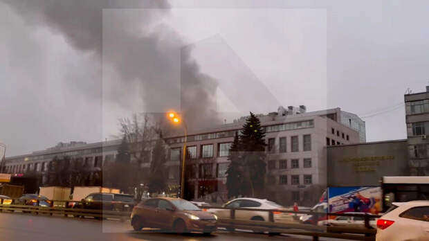 На видео можно заметить, как столб дыма поднимается над зданием.