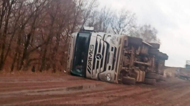 Перевозивший свиней грузовик перевернулся на трассе в Башкирии. Инцидент произошел в Благоварском районе.