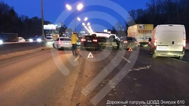 На участке столичной кольцевой автодороги в районе улицы Свободы столкнулись сразу девять легковых авто.