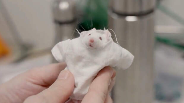 "У этих грызунов своей одежды пока нет, потому что ее еще нужно сшить и делают это сами научные сотрудники. В одной рубашке мышь бегает ровно сутки. Потом ее раздевают, и за изменениями в ее здоровье наблюдают ученые", – сказал корреспондент.
