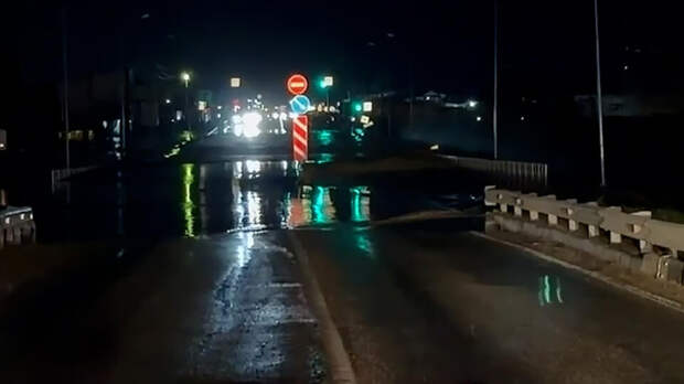 На кадрах с места происшествия видно, что мост полностью ушел под воду.