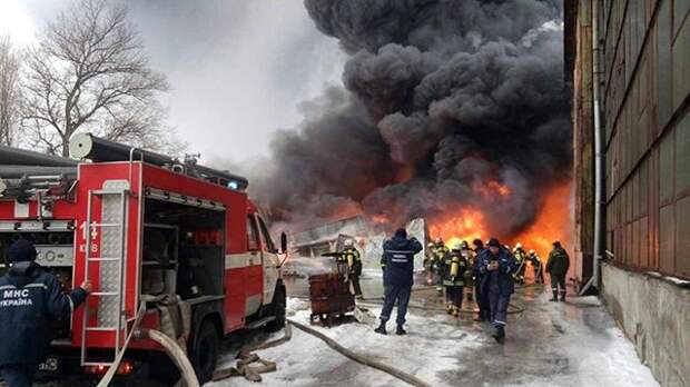 Пожар на складе горюче-смазочных материалов общей площадью 3 тысячи кв. метров возник в центре Киева.