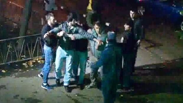По его словам, они набросились на него из-за того, что он не показал им свою сумку.На кадрах видно, что к покупателю подходит мужчина и начинает о чем-то с ним разговаривать. Молодые люди выясняют отношения, но через какое-то время появляется еще несколько мужчин. Позднее завязывается драка.