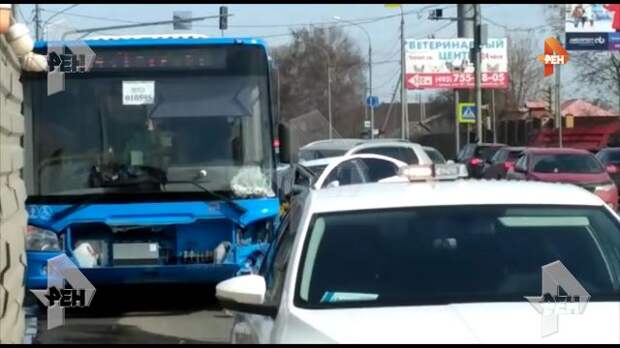 РЕН ТВ публикует видео с места столкновения автобуса с двумя иномарками на Калужском шоссе.