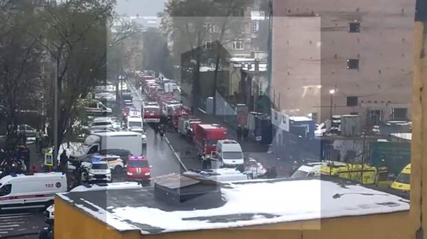 В МЧС добавили, что спасатели осматривают помещения строящегося здания.