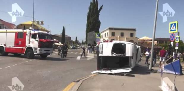 На кадрах видно, что микроавтобус оказался опрокинутым после аварии.
