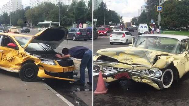 Chevrolet Impala и такси Skoda Оktavia столкнулись на перекрестке на юге Москвы.
