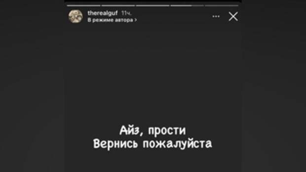 Айза не выдержала такого развития событий и публично продемонстрировала переписку с Гуфом. И вот спустя несколько дней рэпер продолжил издеваться над чувствами экс-супруги, попросил простить и вернуться."Айз, прости. Вернись, пожалуйста", - написал рэпер в своих "сторис".
