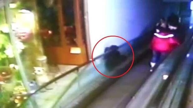 Как видно на кадрах записи, мужчина пытался проникнуть под эскалатор.