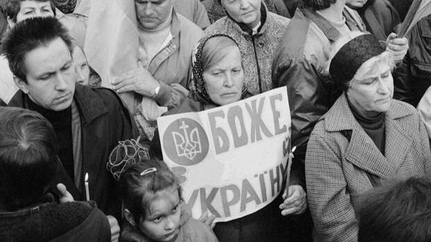 После распада СССР идеологические обоснования государственности Украины мало отличались от тех, что были приняты в большинстве бывших союзных республик. Срочно требовалось хоть какое-то объяснение, почему теперь отдельным частям ранее единого государства надо идти самостоятельным путём. И первое, что приходило на ум — говорить про «наконец-то обретённую независимость». А от кого? Самым простым было сказать — от России.
