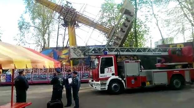 Один из аттракционов на ВДНХ в Москве внезапно остановился вместе с отдыхающими на высоте более чем 10 метров над землей. Для помощи потерпевшим сотрудники МЧС задействовали специальные лестницы.