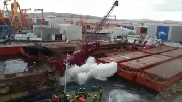Как сообщает Deniz Haber, крепления кранов не выдержали при проведении судоремонтных работ. В результате падения конструкций пострадал один человек.