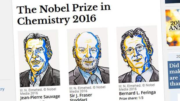Нобелевская премия по химии в этом году присуждена Жан-Пьеру Соважу, Бернарду Феринге и Джеймсу Фрейзеру Стоддарту.