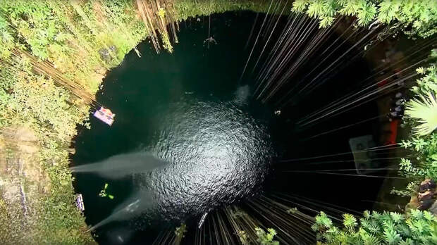 Кадр из программы "Невероятно интересные истории", РЕН ТВ Воду оттуда не пили, зато скидывали туда свои дары: золото, людей – одним словом все, что, по их мнению, могло порадовать божеств. Посещение сенотов в Мексике обойдется в среднем от 700 рублей за человека.