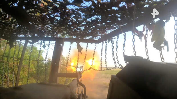 "Используя эффект неожиданности, экипаж Т-80БВ прорвался на ближнюю огневую позицию и прицельным огнем уничтожил блиндаж и расположенную рядом замаскированную пулеметную точку на окраине лесопосадки, которая контролировала проезд по прилегающей дороге", – сообщили в Минобороны.