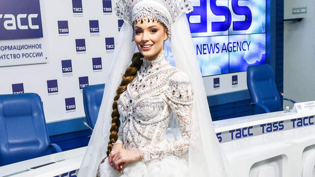 Платье дополняет кокошник.Автор костюма – модельер Ольга Молярова. В беседе с "Известиями" она поделилась, что при создании платья вдохновлялась эпохой Романовых и картиной Михаила Врубеля.