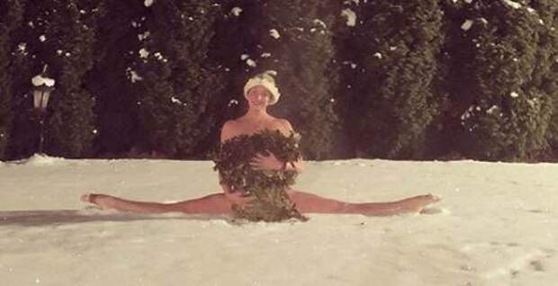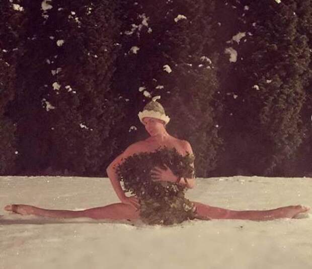 Балерина Анастасия Волочкова разместила в своем "инстаграме" фото, где она садится на очередной шпагат. Нынешний отличается от предыдущих весьма экстремальными условиями, в которых балерина проделывает свое упражнение. Волочкова садится на шпагат прямо в снег на улице. Анастасия полностью обнажена — она лишь прикрывается огромным банным веником, а на голове у нее банная шапочка