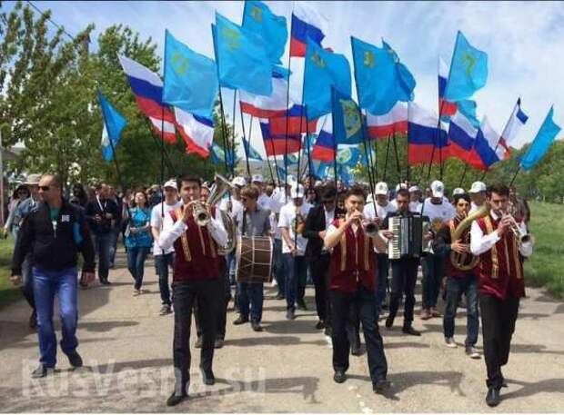 Крымские татары под российскими и национальными флагами отметили праздник "Хыдырлез".