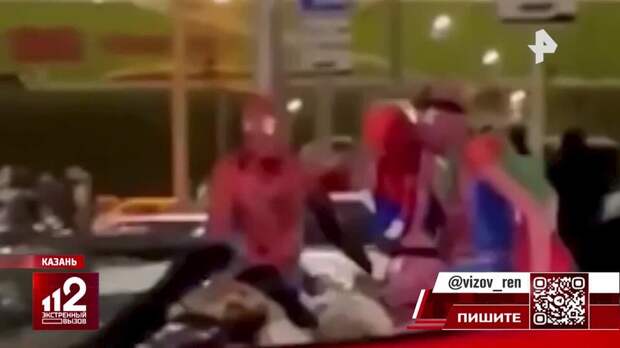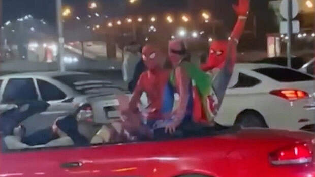 Спайдермены прокатились на кабриолете египтянина по крупнейшей площади Казани.