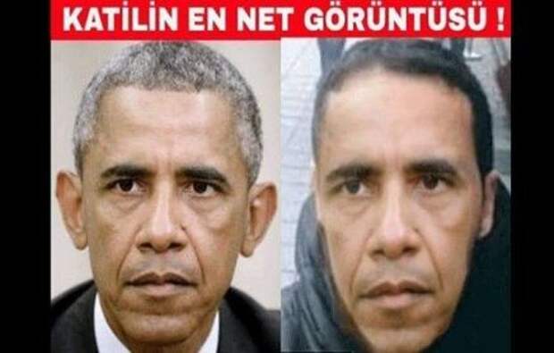 Президент США Барак Обама оказался на плакате о розыске "стамбульского террориста". Его портрет соседствует с портретом разыскиваемого преступника.